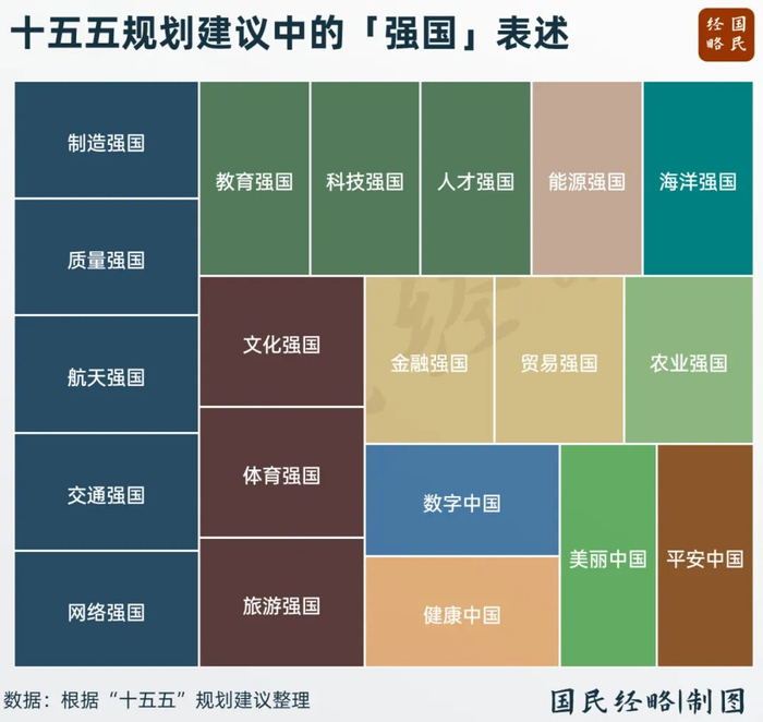 近日发布的国家“十五五”规划建议,提及16大“强国”战略和4个“中国”建设目标,后者分别是“数字中国”、“健康中国”、“美丽中国”、“平安中国”。